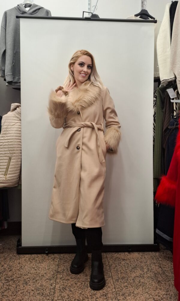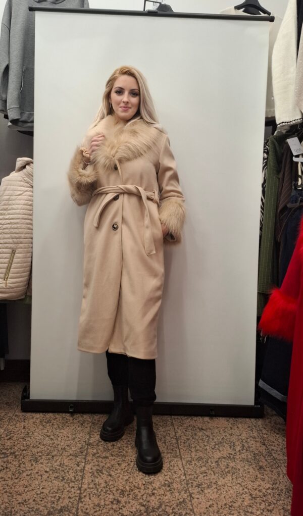 Daljši ženski plašč vam zagotavlja udobje in toplino, združuje razkošje krznenega ovratnika s trpežnostjo svojih materialov. Popoln izdelek za vse priložnosti.