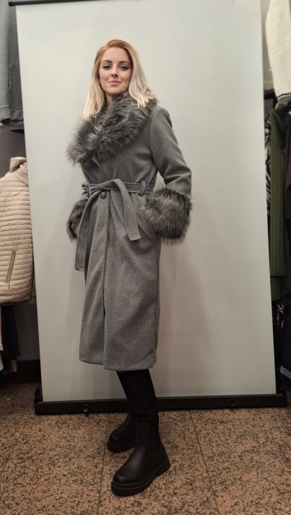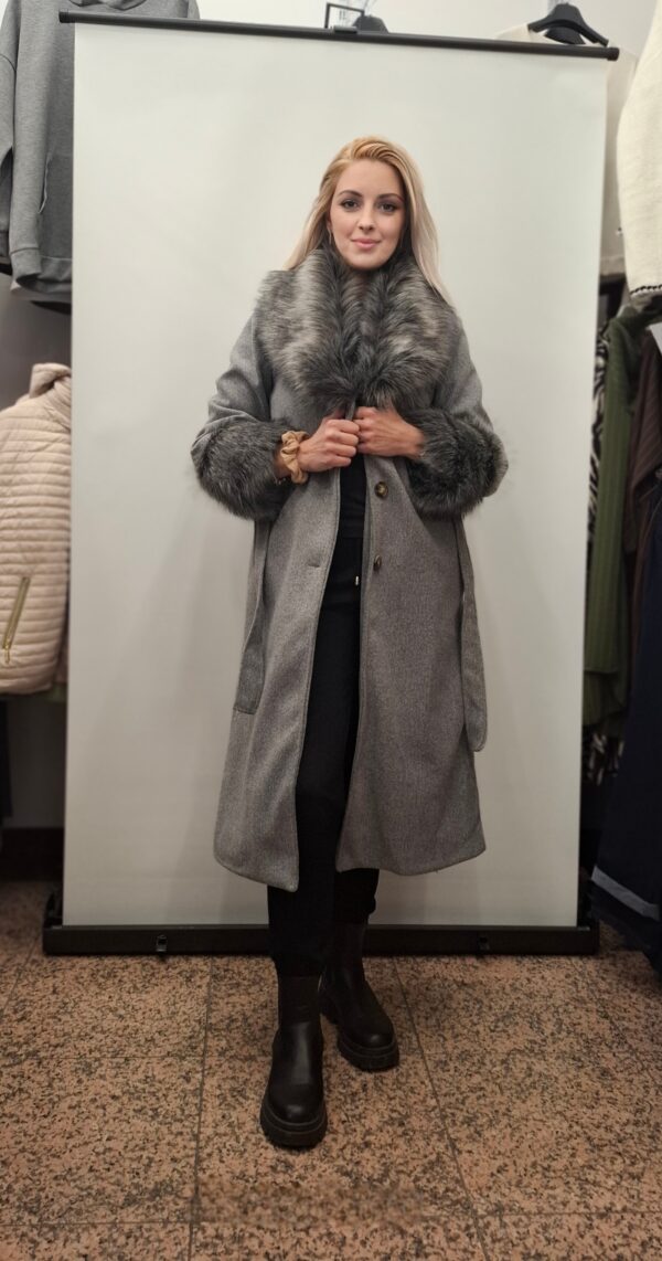 Daljši ženski plašč vam zagotavlja udobje in toplino, združuje razkošje krznenega ovratnika s trpežnostjo svojih materialov. Popoln izdelek za vse priložnosti.