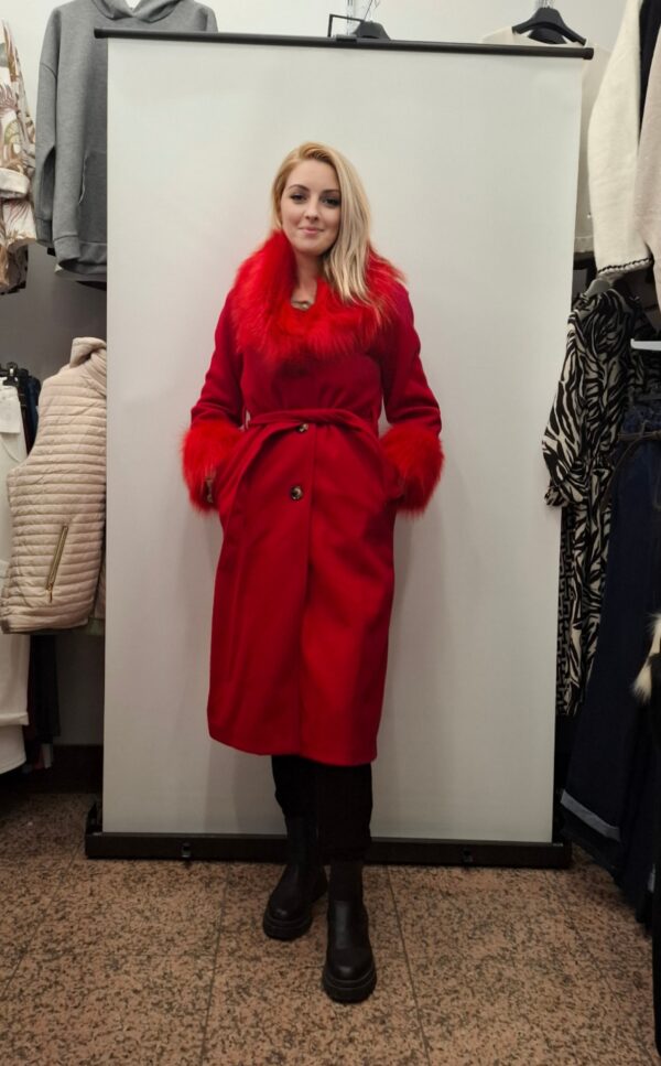 Daljši ženski plašč vam zagotavlja udobje in toplino, združuje razkošje krznenega ovratnika s trpežnostjo svojih materialov. Popoln izdelek za vse priložnosti.