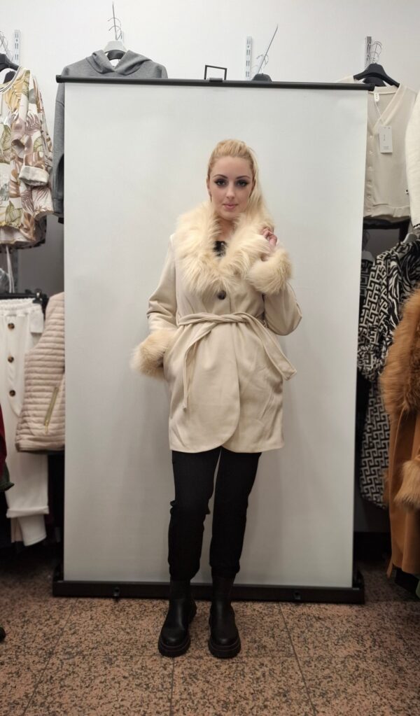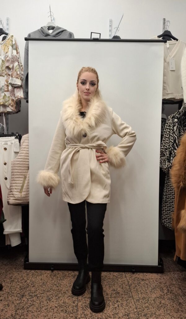 Krajši ženski plašč vam zagotavlja udobje in toplino, zdeužuje razkošje krznega ovratnika s trpežnostjo svoji materialov. Popoln izdelek za vse priložnosti.