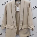 Eleganten ženski blazer z rokavi dolžine 3/4, ki dajejo modern in sproščen videz. Odlično se kombinira z elegantnimi hlačami, kavbojkami ali supergami.