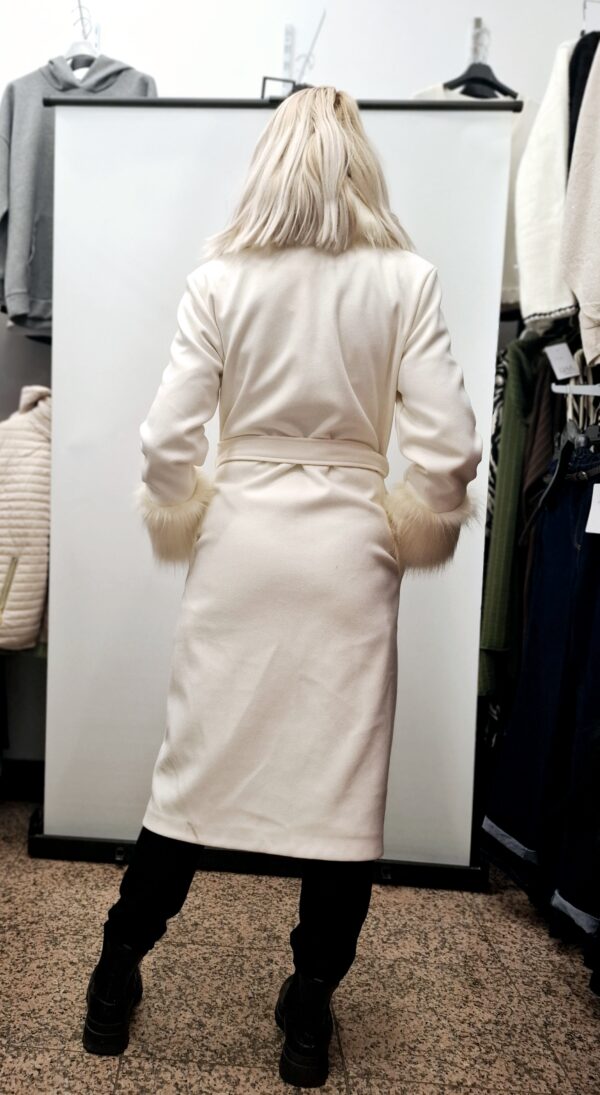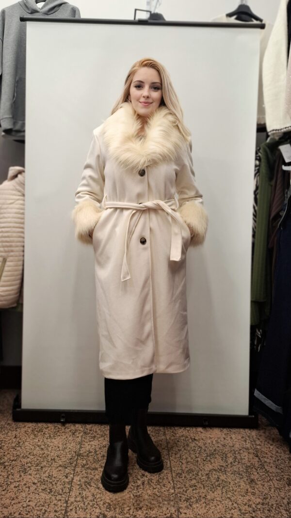 Daljši ženski plašč vam zagotavlja udobje in toplino, združuje razkošje krznenega ovratnika s trpežnostjo svojih materialov. Popoln izdelek za vse priložnosti.