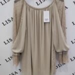 Pentlja na hrbtu doda ženstven in prefinjen videz. Bluza ima ohlapen kroj in 3/4 rokave, zato je primerna za različne tipe postav. Odlično se kombinira s hlačami kot s krili ali kavbojkami.