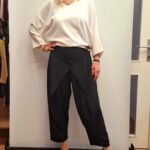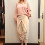 Pentlja na hrbtu doda ženstven in prefinjen videz. Bluza ima ohlapen kroj in 3/4 rokave, zato je primerna za različne tipe postav. Odlično se kombinira s hlačami kot s krili ali kavbojkami.