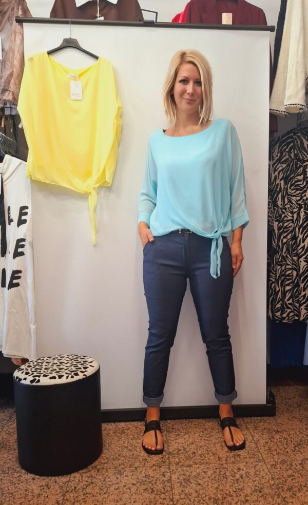 Elegantna ženska bluza ima 3/4 rokave. Pri strani se zaveže. Zelo lepo pristaja na vse postave.