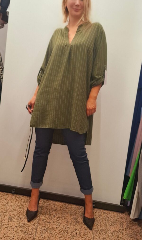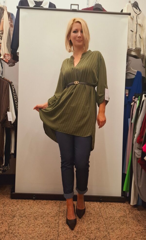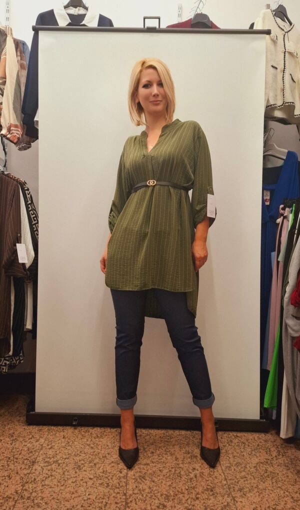 Čudovita elegantna bluza/tunika, ki s pasom poudari boke. Bluza je v sprednjem delu malo krajša, zadaj daljša.