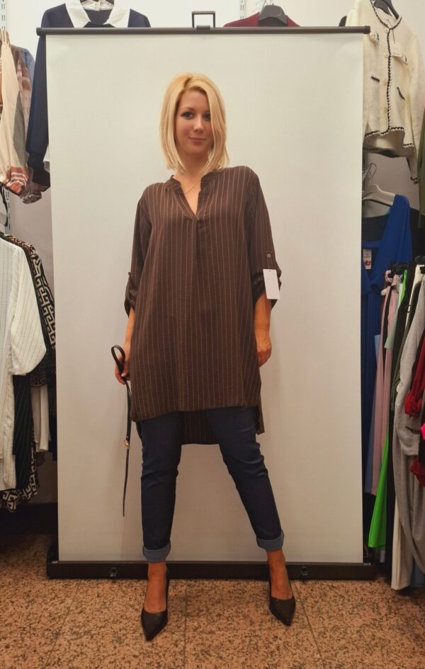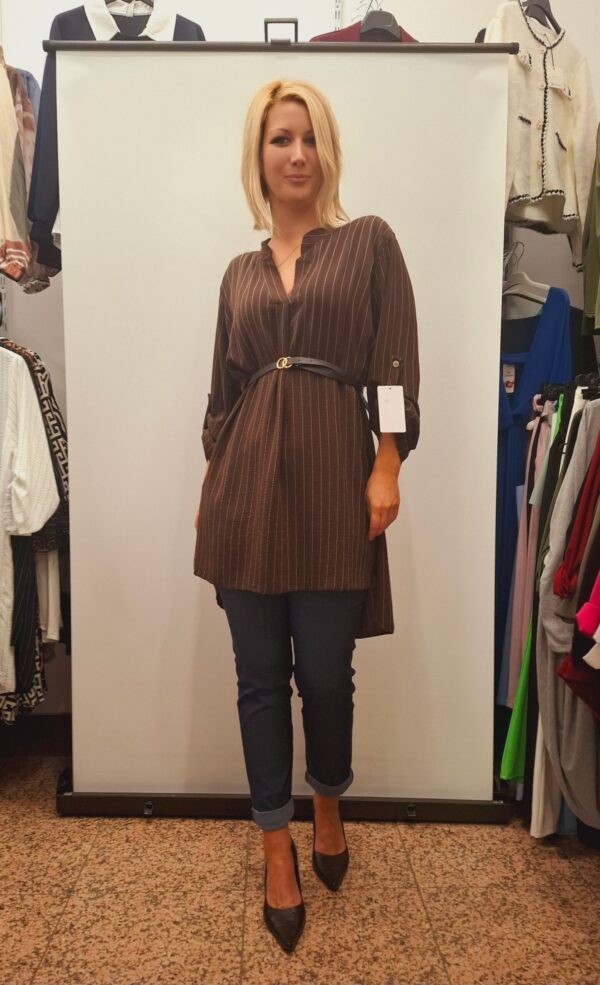 Čudovita elegantna bluza/tunika, ki s pasom poudari boke. Bluza je v sprednjem delu malo krajša, zadaj daljša.