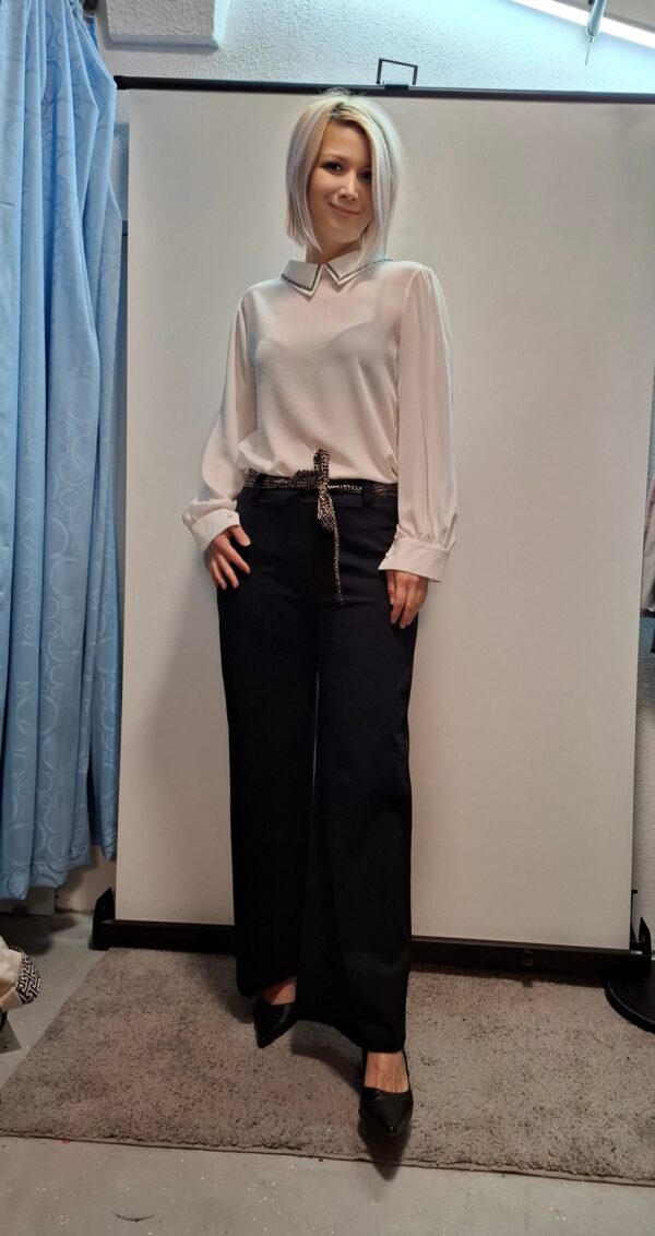 Ženska bluza z majhnimi kristalčki na ovratniku, ki dodajo čar.