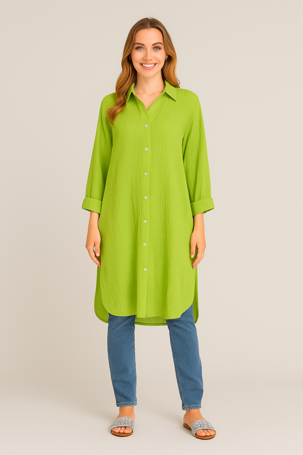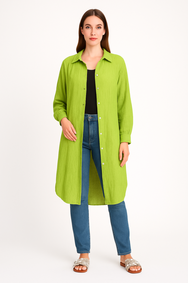 Ženska daljša srajčna jopa na gumbe.