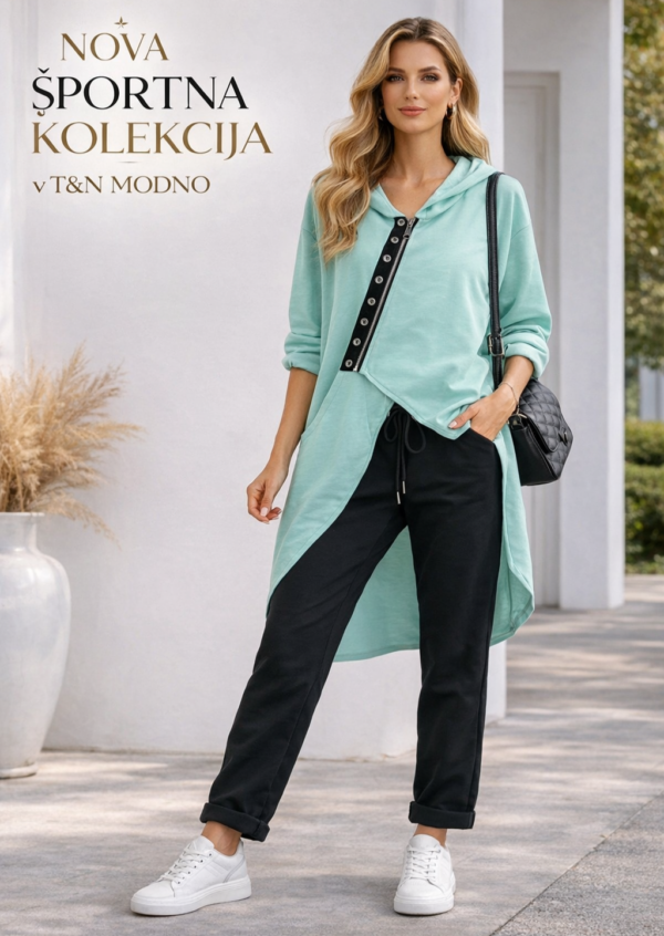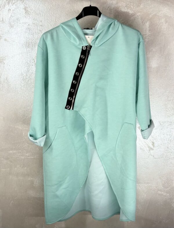 Ženska jopa z dolgimi rokavi se zapenja v zgornjem delu. Zelo modni kos za različne kombinacije.