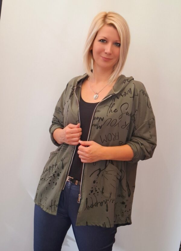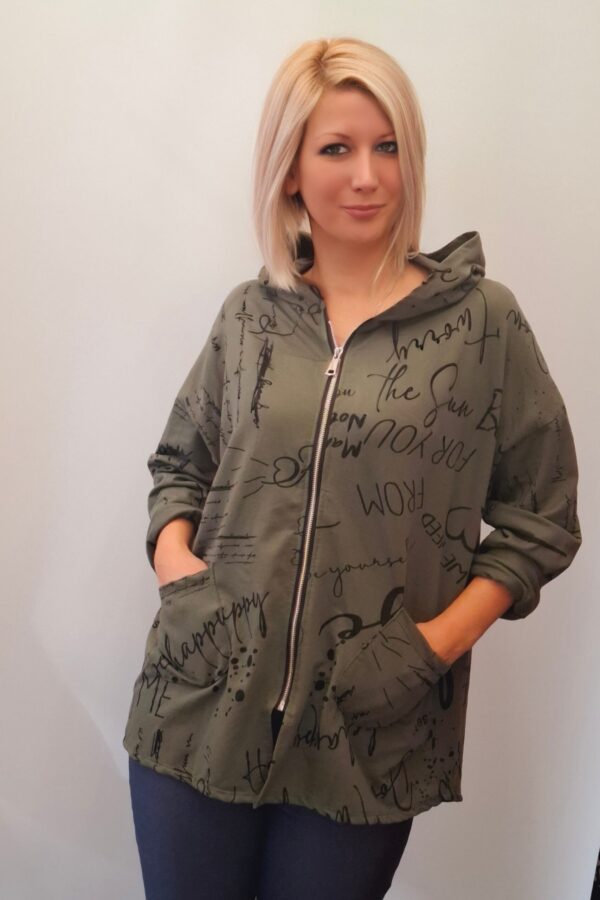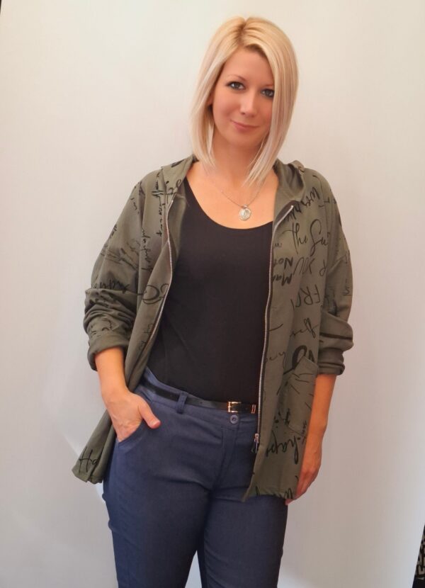 Ženska bombažna jopa s kapuco in zadrgo.
