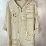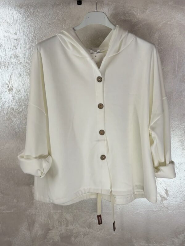 Ženska jopa z dolgimi rokavi. Ima kapuco. Na spodnjem robu ima všito vrvico za prilagajanje velikosti.