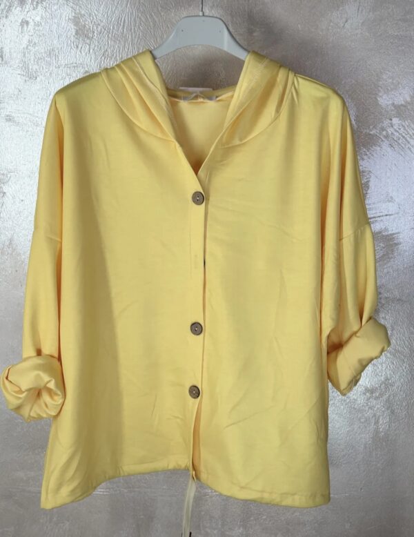 Ženska jopa z dolgimi rokavi. Ima kapuco. Na spodnjem robu ima všito vrvico za prilagajanje velikosti.
