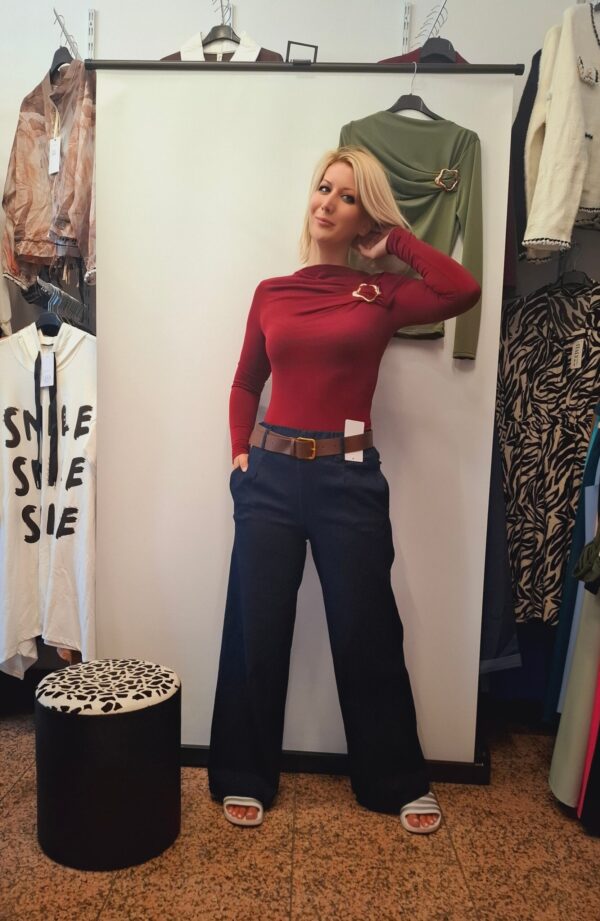 Elegantna ženska majica z dolgimi rokavi. Je oprijeta in elastična.