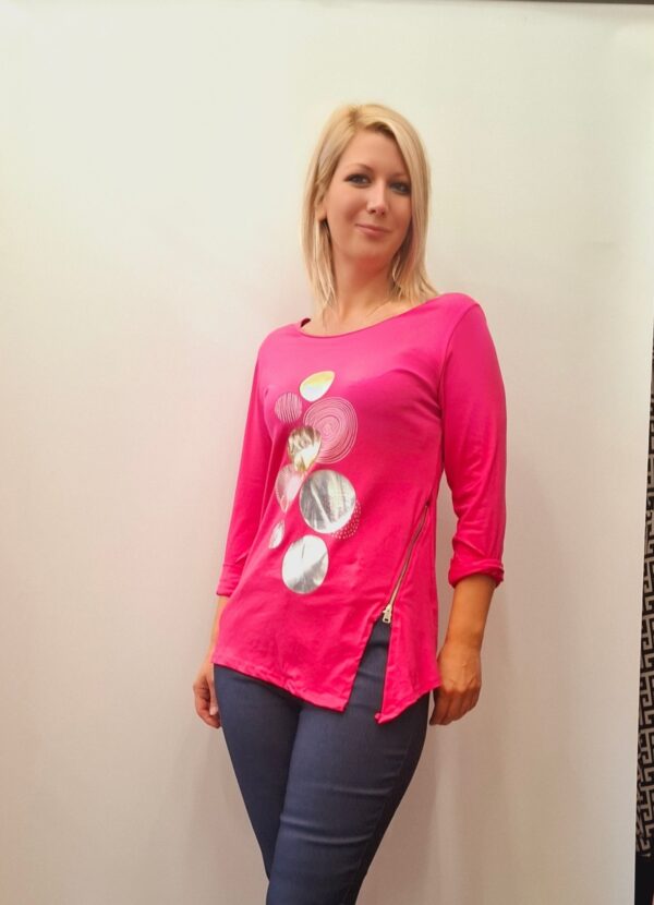 Ženska majica z dolgimi rokavi. Pri strani ima zadrgo, ki se lahko odpne.