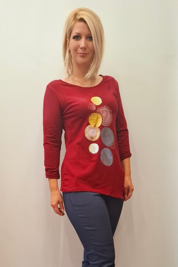 Ženska majica z dolgimi rokavi. Pri strani ima zadrgo, ki se lahko odpne.