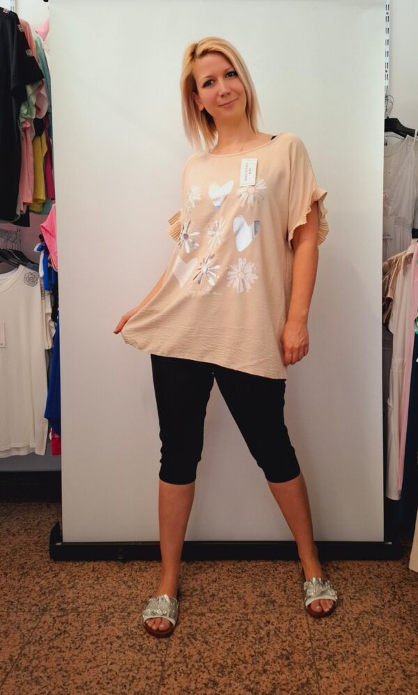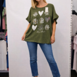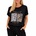 Udobna ženska majica z modernim potiskom na sprednji strani. Mehak in prijeten material zagotavlja udobje skozi ves dan ter je primeren za sproščene in vsakodnevne kombinacije.