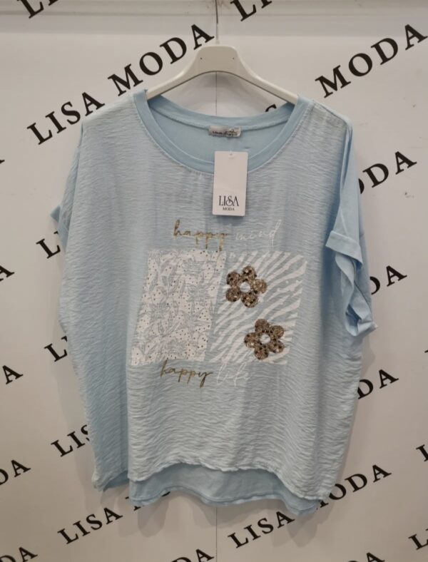 Udobna ženska majica z modernim potiskom na sprednji strani. Mehak in prijeten material zagotavlja udobje skozi ves dan ter je primeren za sproščene in vsakodnevne kombinacije.