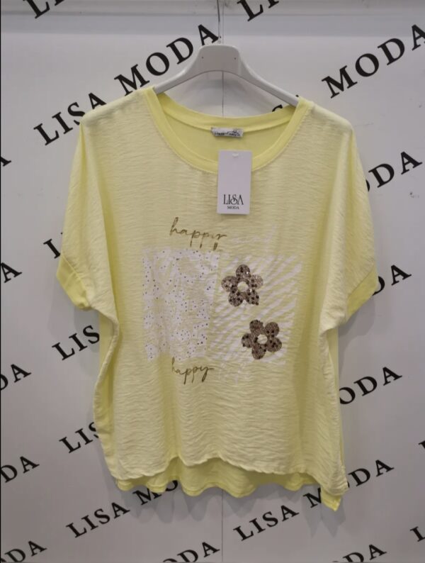 Udobna ženska majica z modernim potiskom na sprednji strani. Mehak in prijeten material zagotavlja udobje skozi ves dan ter je primeren za sproščene in vsakodnevne kombinacije.