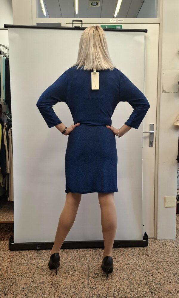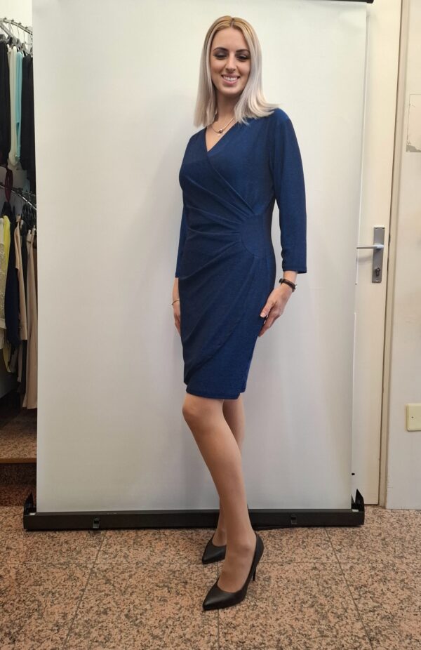 Praznična obleka z bleščicami, ki je z nabrano tkanino v trebušnem predelu je izredno laskav, saj vizualno oblikuje postavo in prikrije trebušček.
