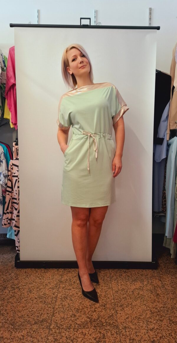 Čudovita kompaktna obleka z žepi. Udobna in lahkotna za nošenje.