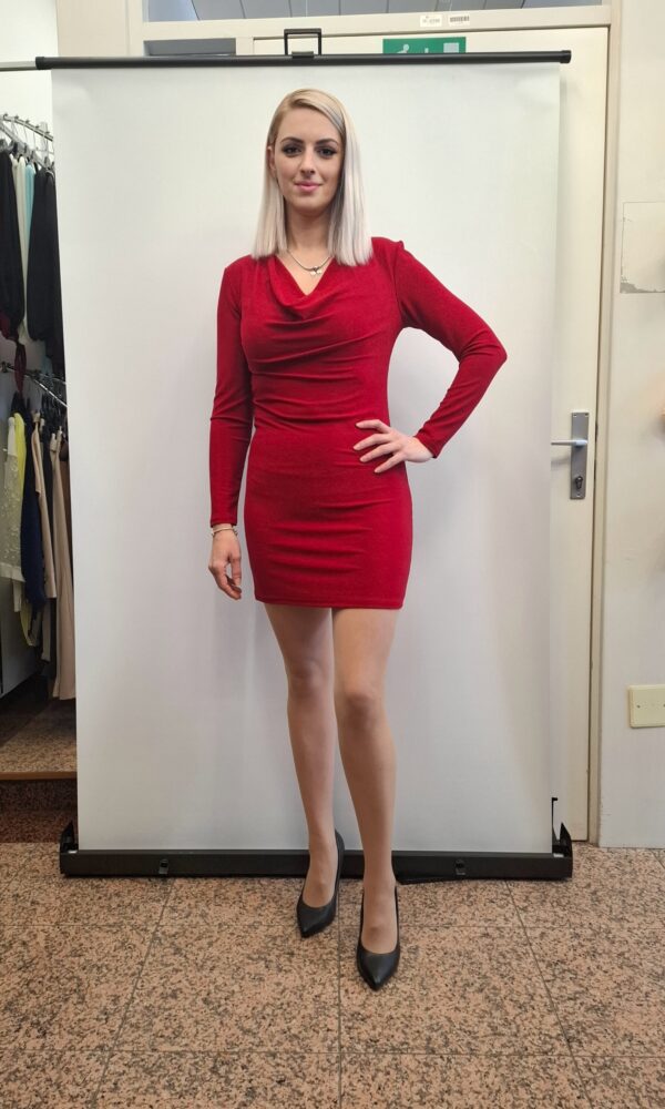 Praznična nabrana obleka z bleščicami, ki se prilagaja vašemu telesu.