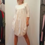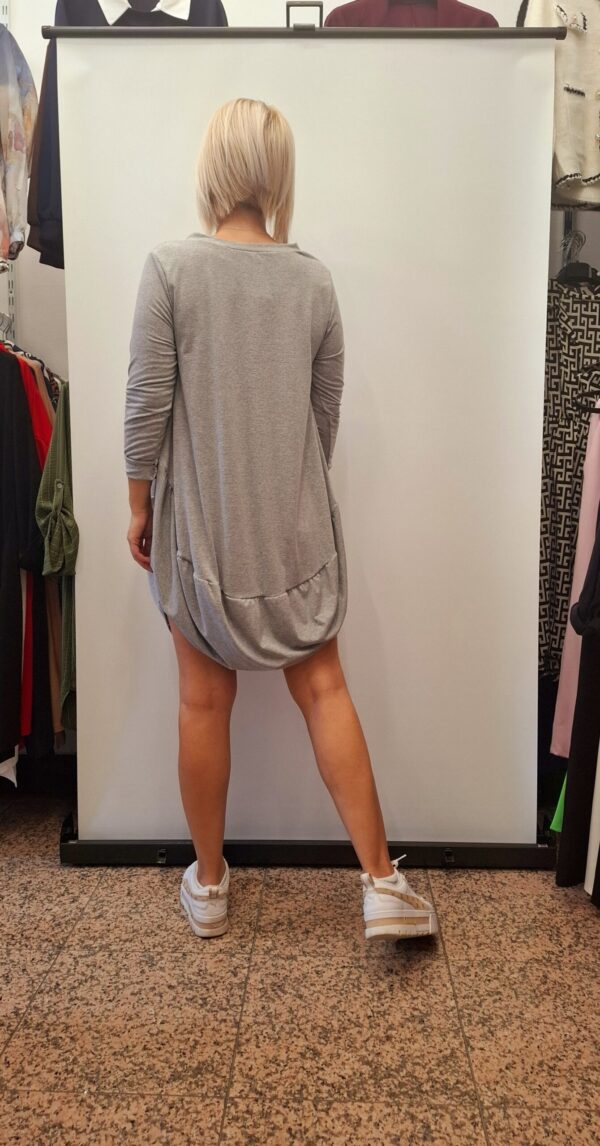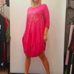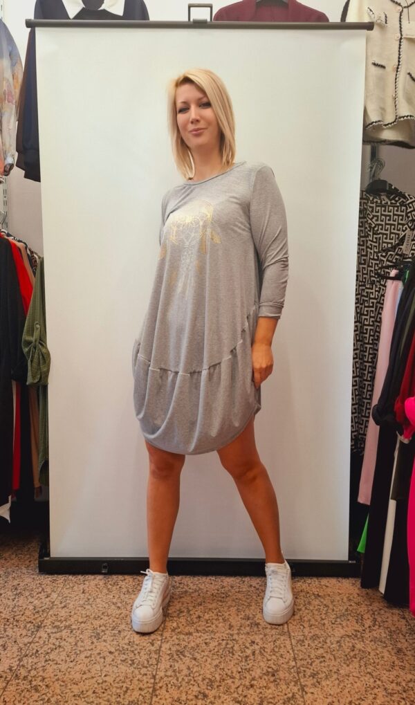 Ženska tunika/obleka na balon. Na sprednji strani je tisk, spodaj je zaključena na balon.