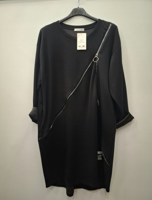 Ženska tunika/obleka z čudovito zadrgo, ki jo regulirate po svoji postavi. Ima dolge rokave, ki jih lahko zavihate po vaši želji. Nosite jo lahko samostojno oz. odvisno od vaše dolžine. Pri straneh ima žepe.