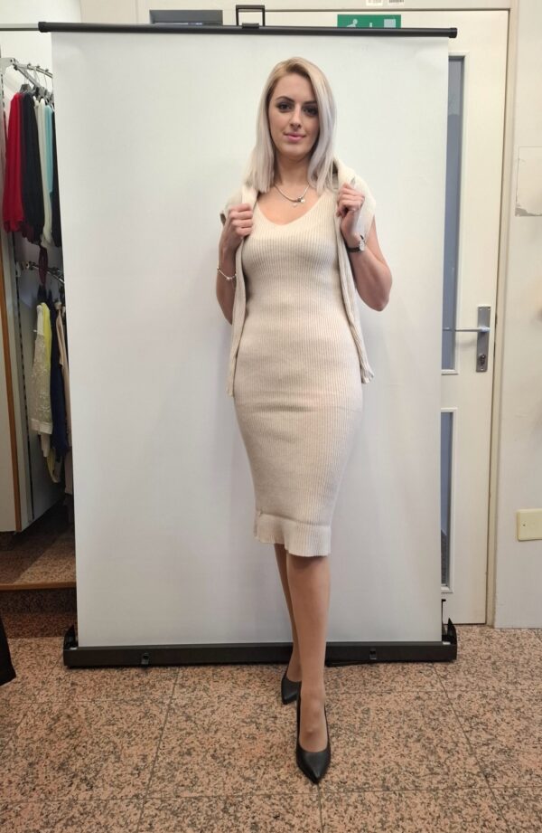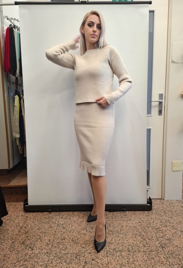 Ženski pleten kompet dolga obleka + pulover. Je zelo mehak in udoben ter elastičen.