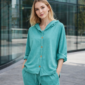 Moderna ženska tunika iz bolj kakovostnega materiala, ki je prijeten na otip. Zadaj podaljšan kroj.
