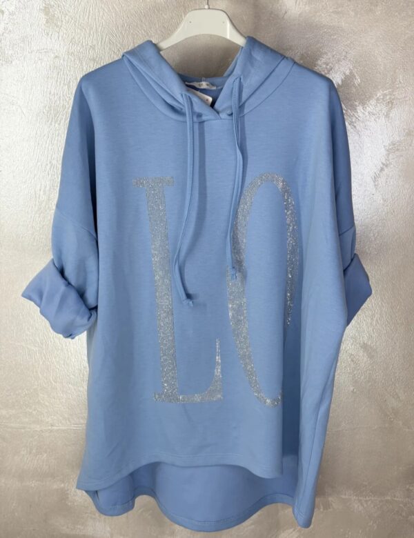 Ženska tunika na A kroj s potiskom. Ima kapuco in dolge rokave, ki jih lahko zavihate po vaši želji.