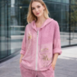 Ženska tunika/obleka na balon. Na sprednji strani je tisk, spodaj je zaključena na balon.