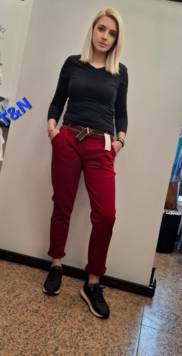 Ženske KOMPAKTNE moderne hlače so zelo udobne in z pasom poudarijo vašo postavo..