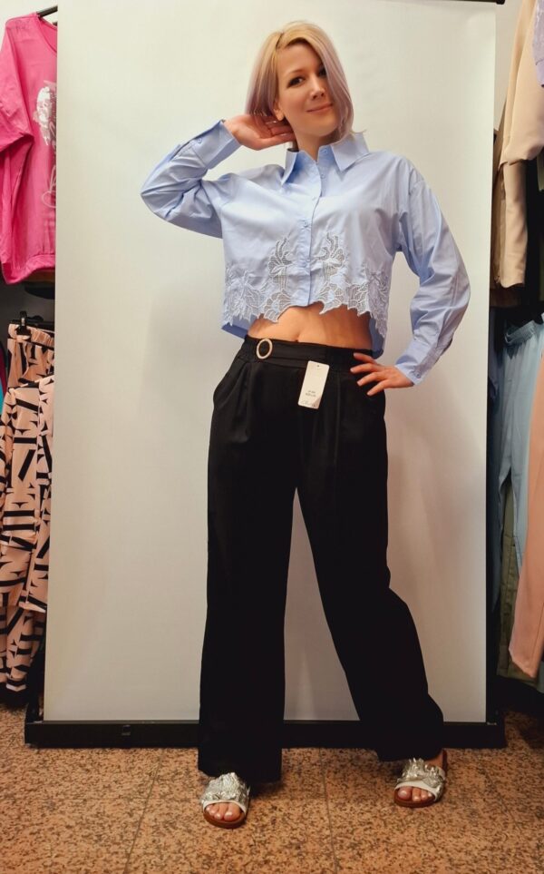 Modne kompaktne hlače širokega kroja. V pasu je všita elastika. So mehke in udobne in lepo padajo.