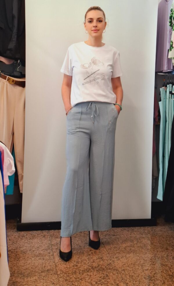 Modne lahkotne hlače širokega kroja. V pasu je všita elastika.
