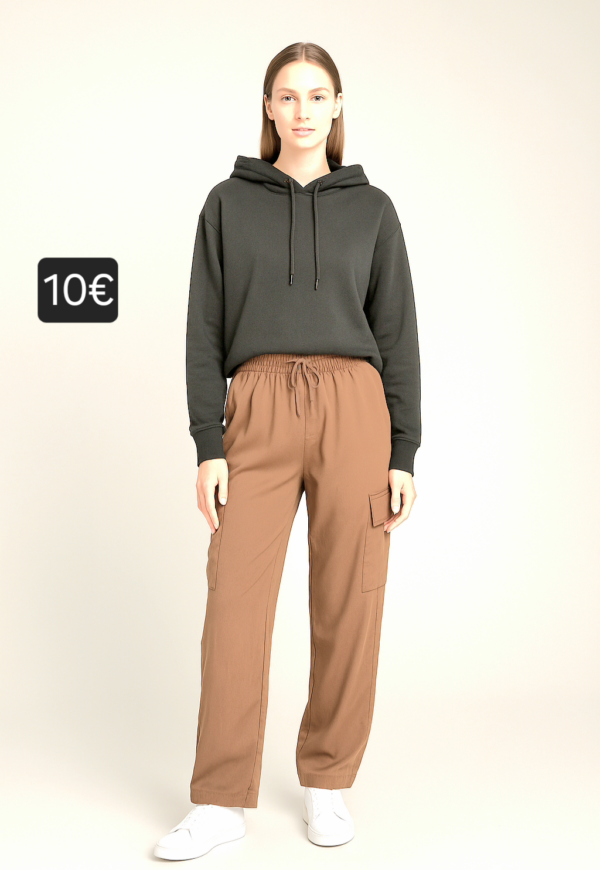 Čudovite kargo hlače z elastiko v pasu in s širokimi hlačnicami. Pri strani imajo žepe.