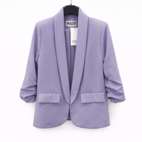 Eleganten ženski komplet, ki vključuje suknjič in hlače s pasom. Moderen kroj in udoben kompakten material sta idealna za poslovne ali posebne priložnosti.