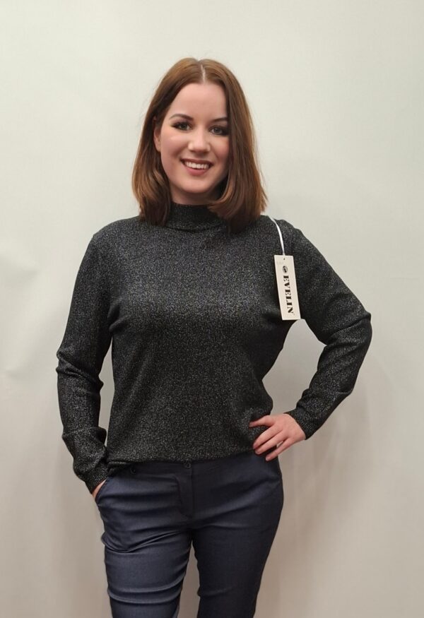 Ženski tanjši pol puli z bleščicami. Zaradi sestave viskoze se boste v njem počutili sproščeno, saj je mehak in diha na vaši koži. Mešanica materialov vam zagotavlja tudi dolgotrajnost izdelka.