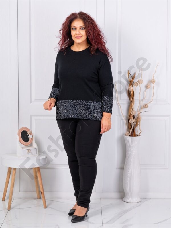 Ženski tanjši pulover, ki z vzorci in bleščicami doda svojo eleganco. Zaradi sestave viskoze se boste v njem počutili sproščeno, saj je mehak in diha na vaši koži. Mešanica materialov vam zagotavlja tudi dolgotrajnost izdelka.