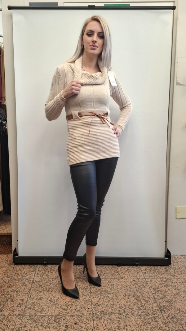 Ženski pleten pulover s pasom oz. tunika/obleka odvisno od vaše dolžine.