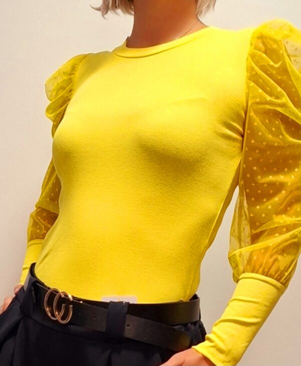 Ženska rebrasta majica s prosojnimi rokavi. Majica je mehka in zračna.