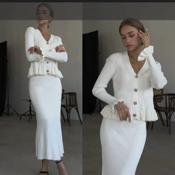 Ženski pleten kompet jopa + krilo. Je zelo mehak in udoben ter elastičen.